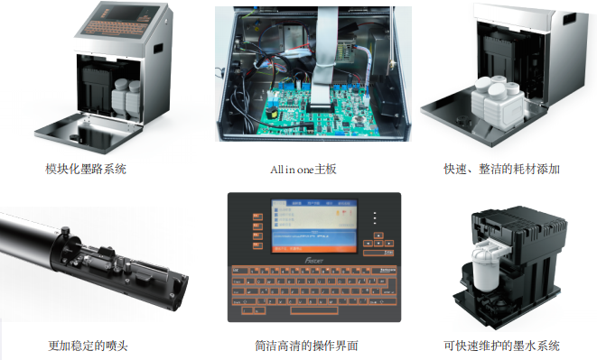 使用CIJ技术高新科技, 让标识方案更简单, 模块化设计提高了机器稳定性和提供了快速维护可能, 内置两种喷印模式可选择,满足不同行业的喷码需求。